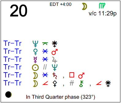 The following aspects (major only) and positions are at noon (EDT) on October 20th: