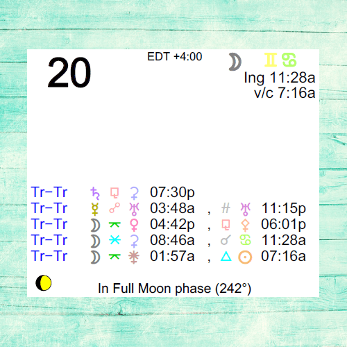 **I suggest paying close attention to applying aspects. The energy of the aspect builds as it gets closer to exact. Once an aspect involving inner planets has happened, it’s over. Separating aspects are good to know for context, but in terms of energy that is with us today, applying aspects are most important. (This is the case for daily astrology influences involving inner planets, which pass quickly, and not natal astrology aspects, which are with us for a lifetime).