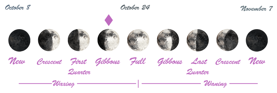 - We are in between the First Quarter Moon (which occurred on the 16th) and the Full Moon (which will happen on the 24th).