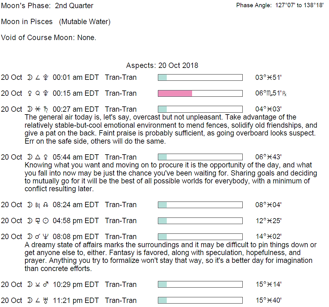 **Conjunctions to Select Fixed Stars on October 20, 2018.**
