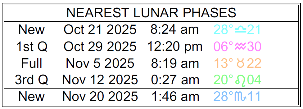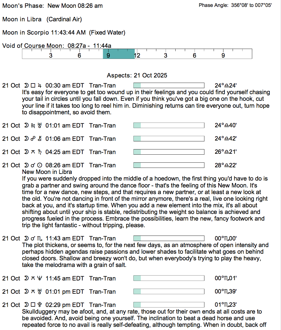- A New Moon will occurs today at 8:24 AM in the sign of Libra.