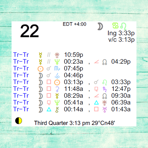 - The Moon is void from 3:13 PM until 3:33 PM.