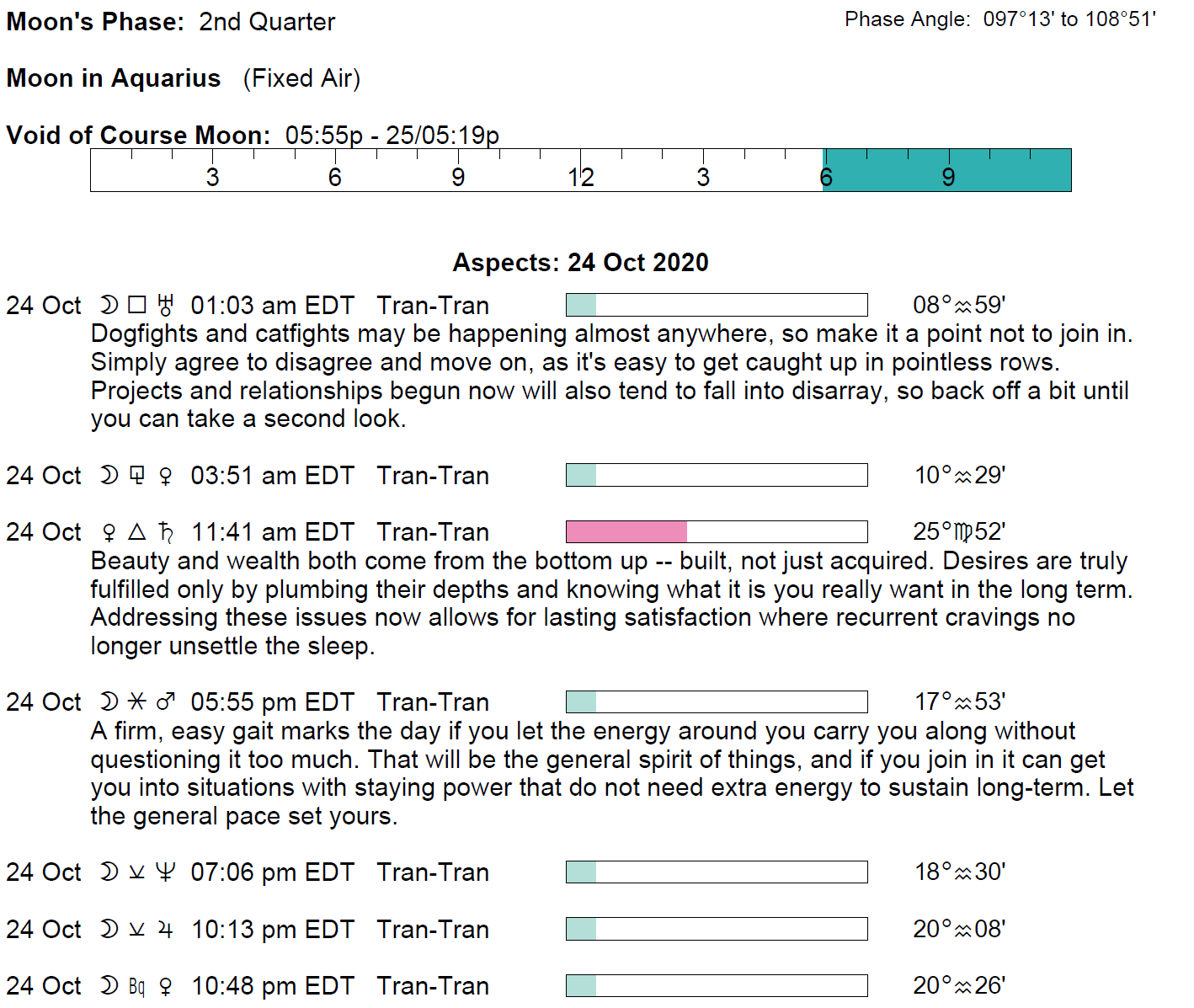 If you’re astrologically inclined and interested in the details of the Astrology of today, here are some of the factors considered in the forecasts: