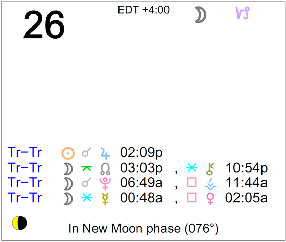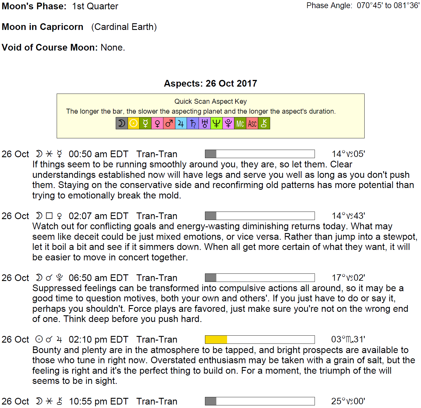 The following aspects (major only) and positions are at noon (EDT) on October 26th: