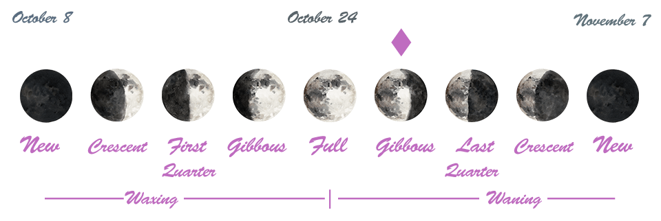 - The Full Moon occurred on the 24th in the sign of Taurus, and the Last Quarter Moon will happen on October 31st.