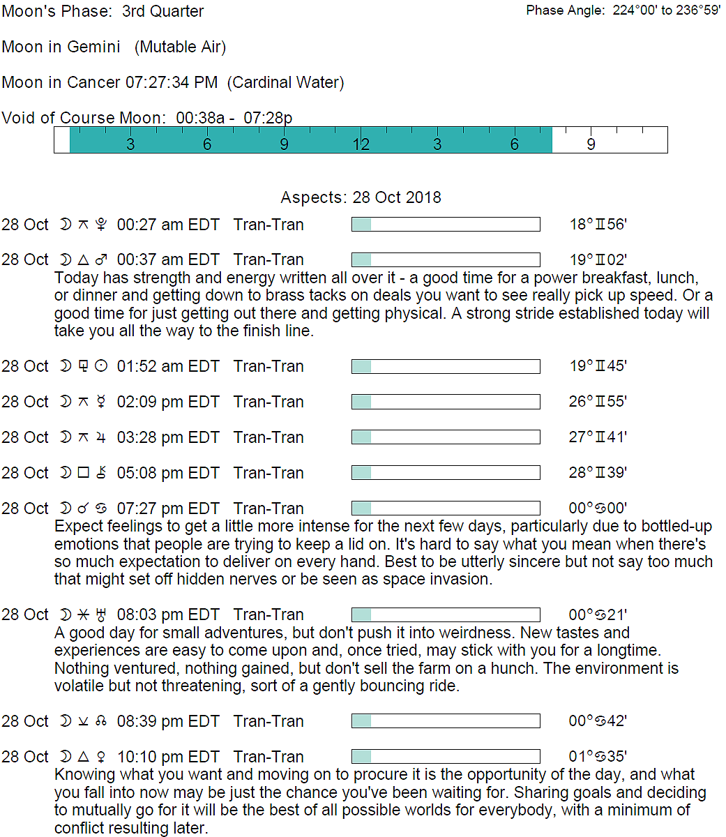 **Conjunctions to Select Fixed Stars on October 28, 2018.**