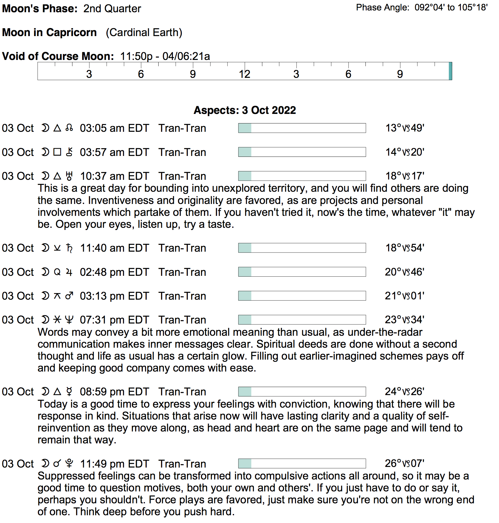 - The void Moon period begins tonight at 11:48 PM EDT.