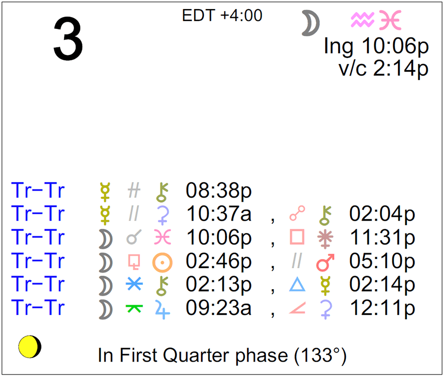 - The Moon is in Aquarius until 10:06 PM, from which time the Moon is in Pisces.