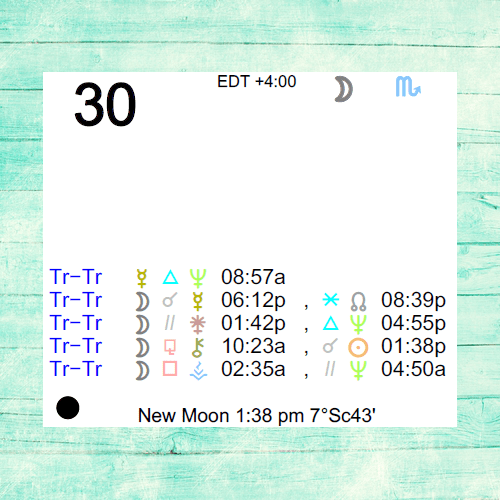 - A New Moon occurs today at 1:38 PM in the sign of Scorpio.