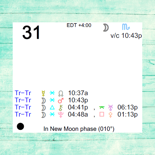 - The Moon is in Scorpio all day (until Tuesday, November 1st, at 10:42 AM).
