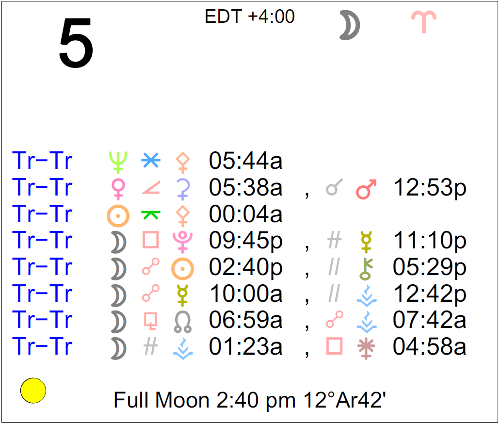 - The Full Moon occurs today at 2:40 PM in the sign of Aries.