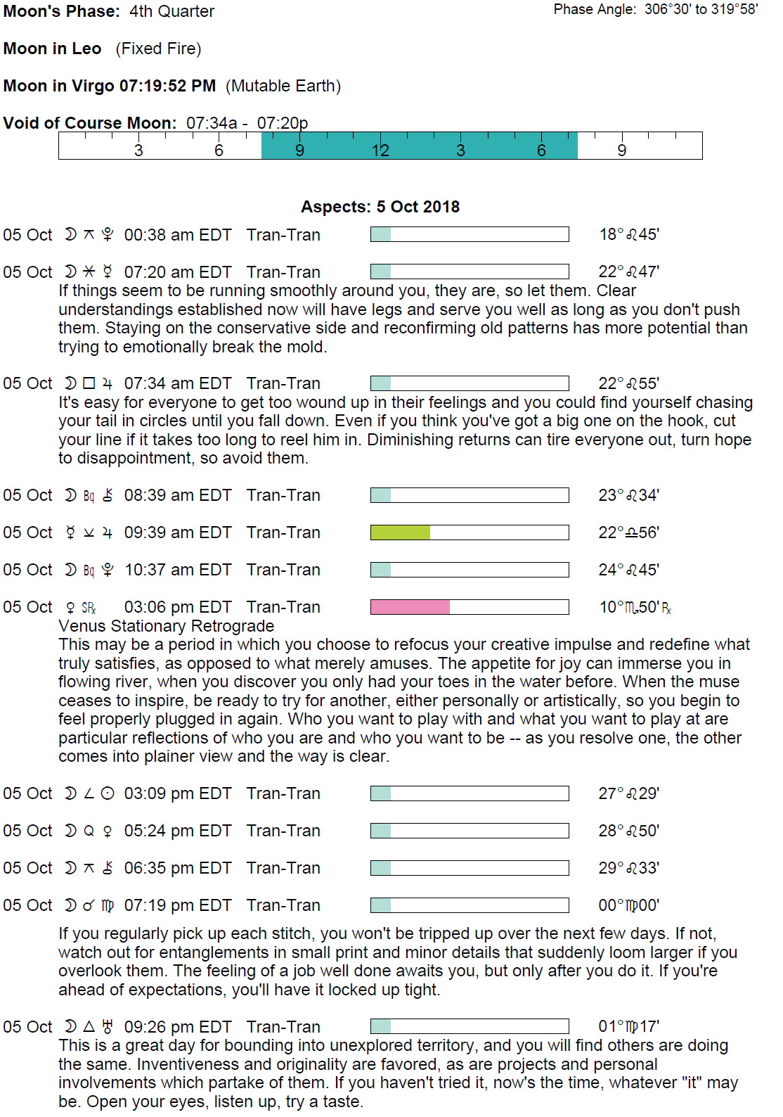 Planet Color Key: The longer the bar, the slower the aspecting planet and the longer the duration of the planet’s transit.