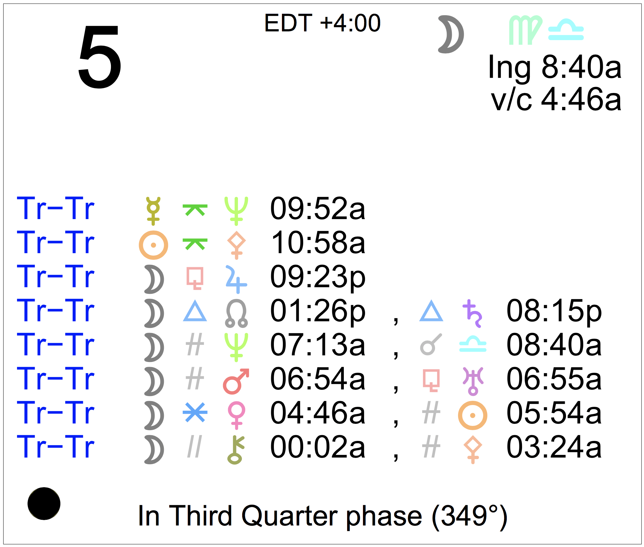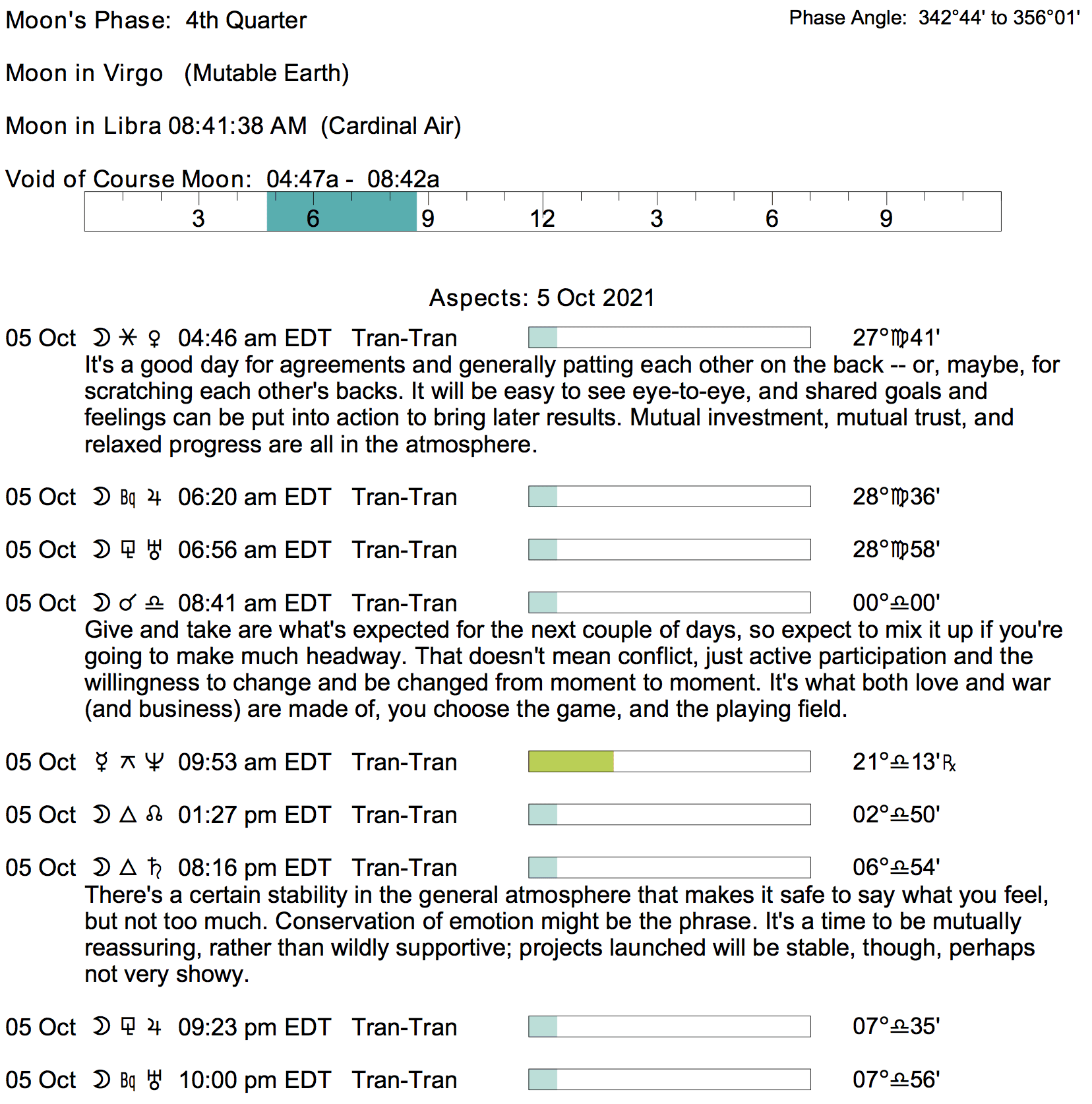 - A void Moon period occurs today from 4:46 AM to 8:40 AM.