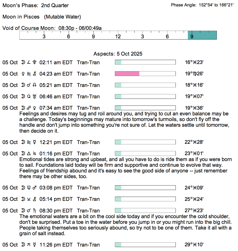 If you’re astrologically inclined and interested in the details of the Astrology of today, here are some of the factors considered in the forecasts: