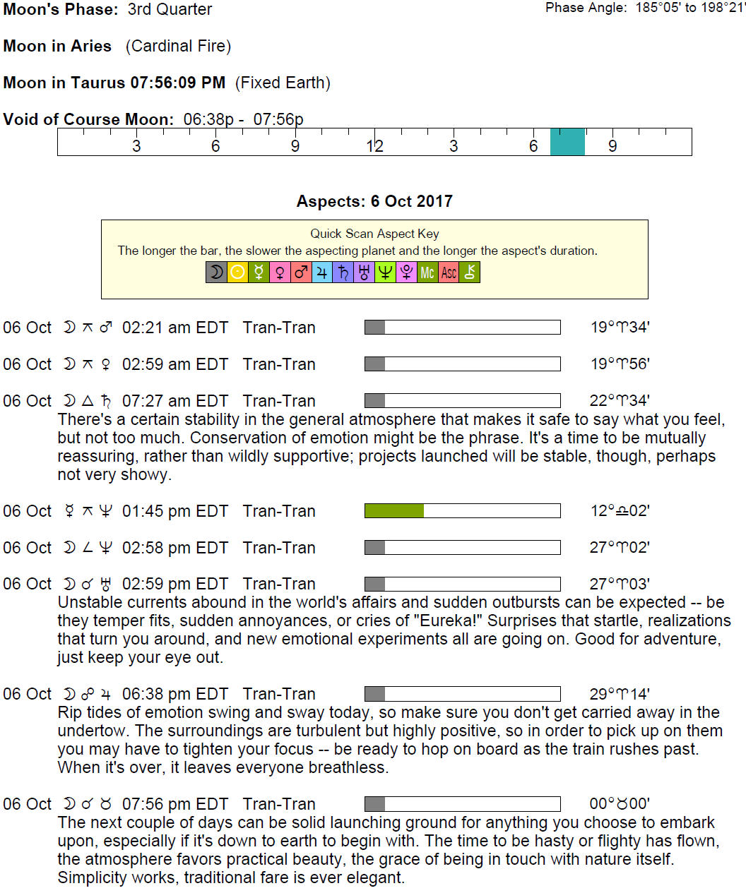 Transits 6 October 2017