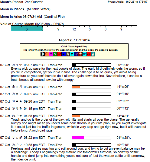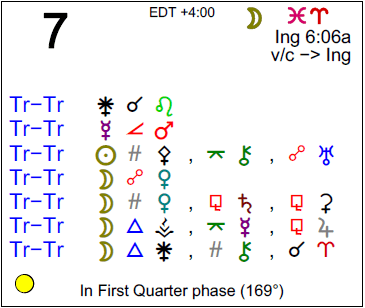 The following aspects (major only) and positions are at noon (EDT) on October 7th: