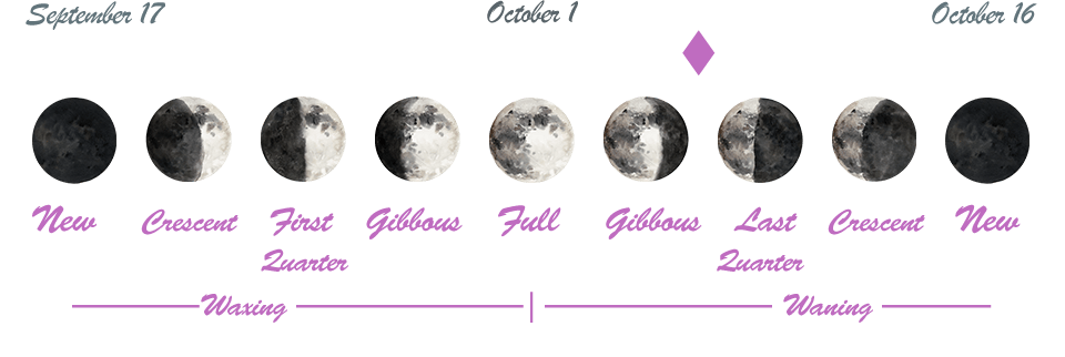 - We’re in between the Full Moon in Aries that occurred on the 1st and the Last Quarter Moon that will occur on the 9th.