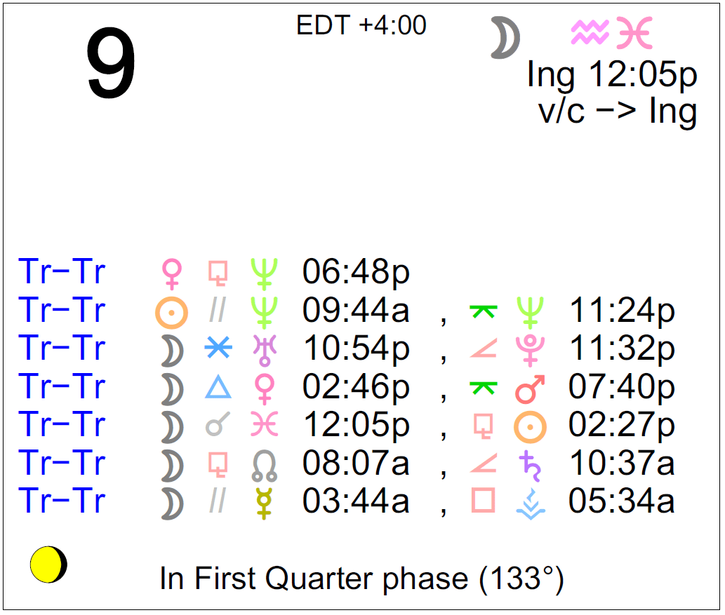 - The void Moon continues until 12:05 PM (since yesterday at 2:26 PM).