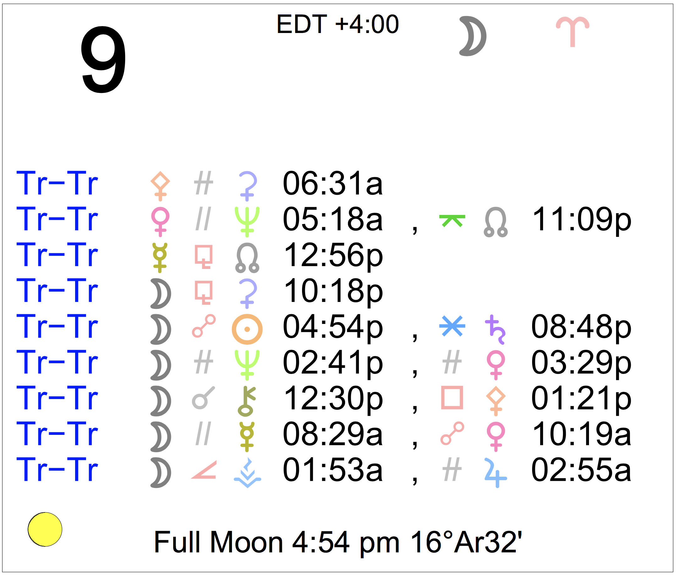 - The Full Moon occurs today at 4:54 PM EDT in the sign of Aries.