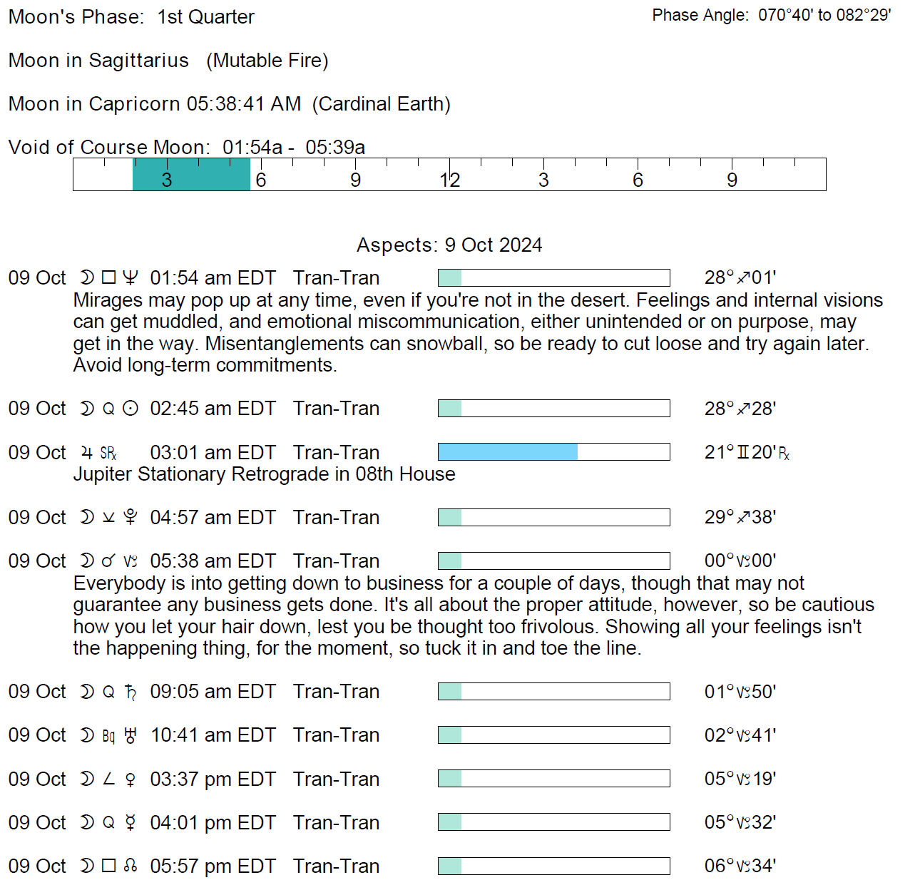 - Jupiter stations and turns retrograde today (Jupiter is retrograde from October 9th, 2024, to February 4th, 2025).