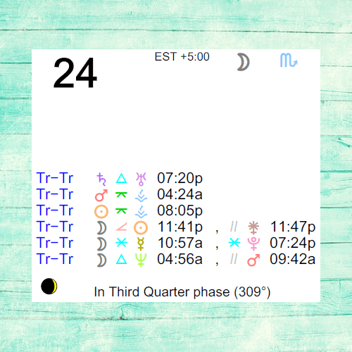**I suggest paying close attention to applying aspects. The energy of the aspect builds as it gets closer to exact. Once an aspect involving inner planets has happened, it’s over. Separating aspects are good to know for context, but in terms of energy that is with us today, applying aspects are most important. (This is the case for daily astrology influences involving inner planets, which pass quickly, and not natal astrology aspects, which are with us for a lifetime).