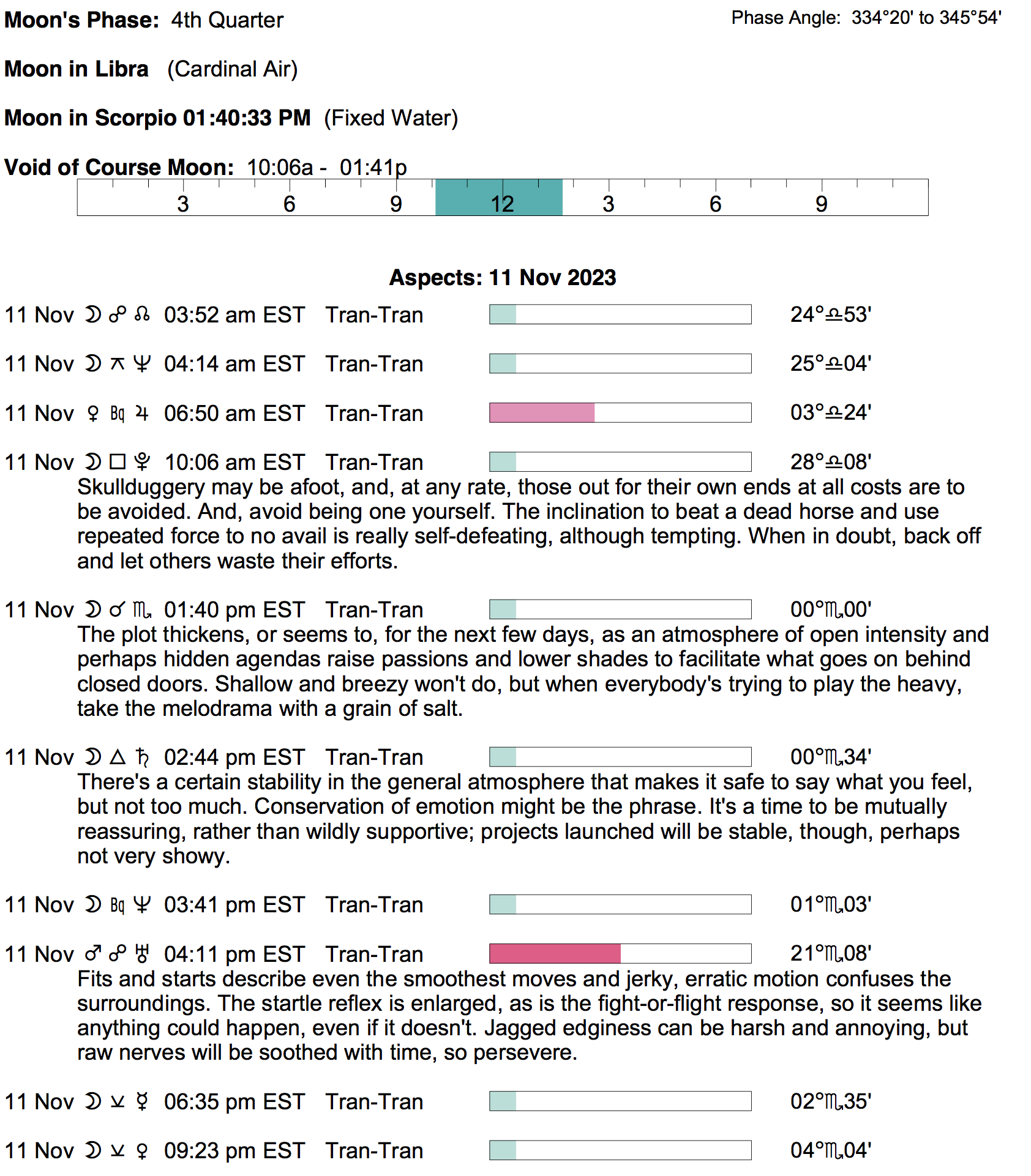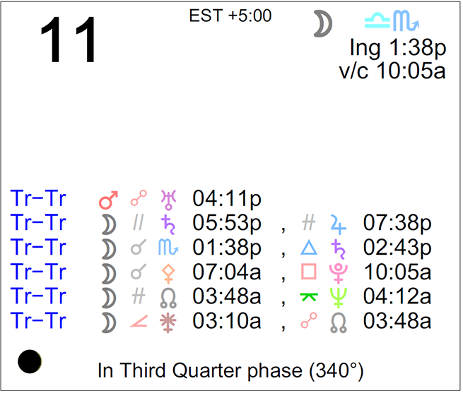 - A void Moon period occurs today from 10:05 AM to 1:38 PM.