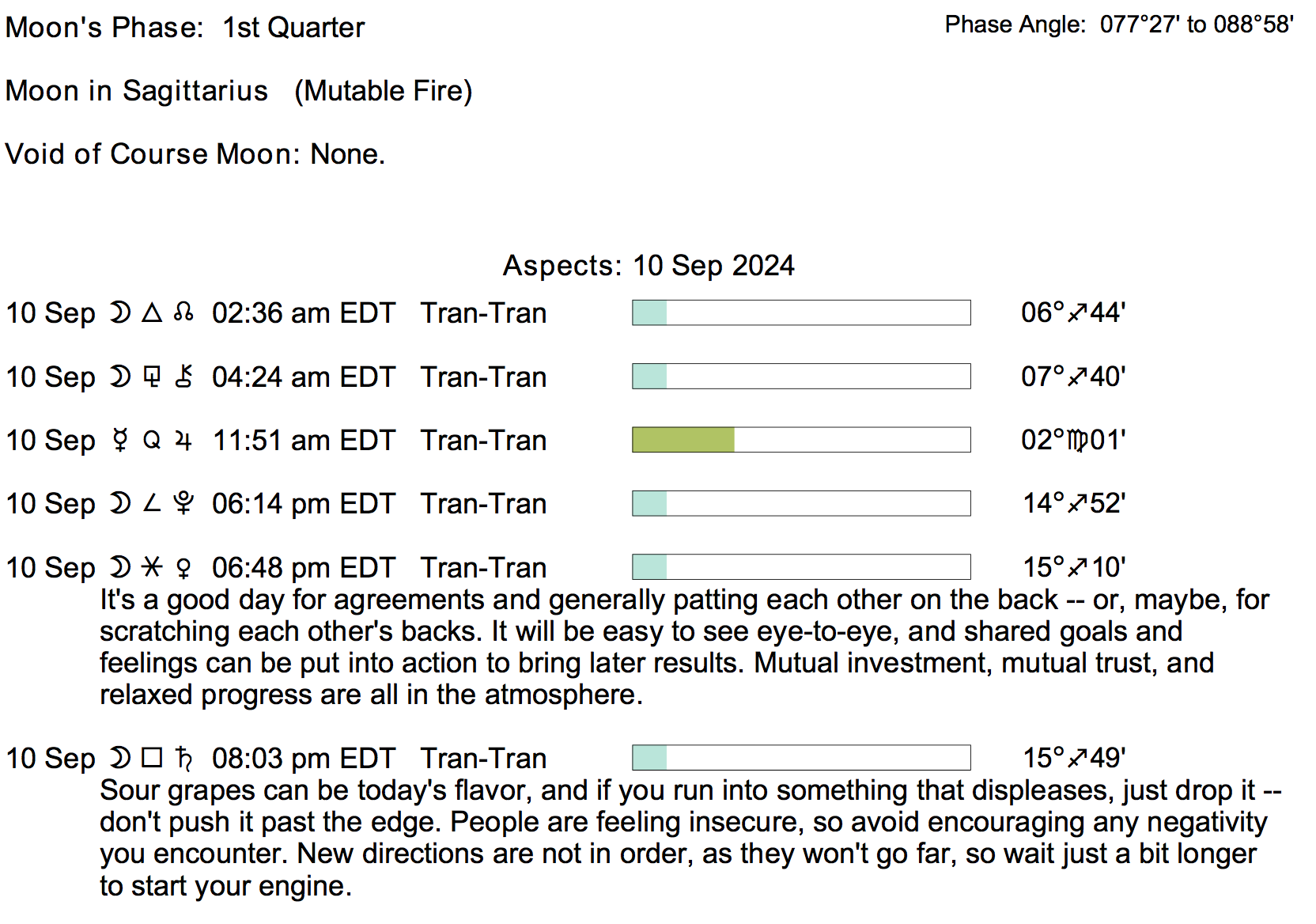 If you’re astrologically inclined and interested in the details of the Astrology of today, here are some of the factors considered in the forecasts: