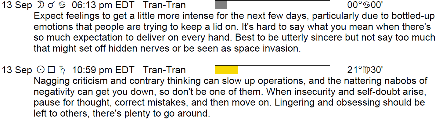 If you’re astrologically inclined and interested in the details of the Astrology of today, here are some of the factors considered in the forecasts: