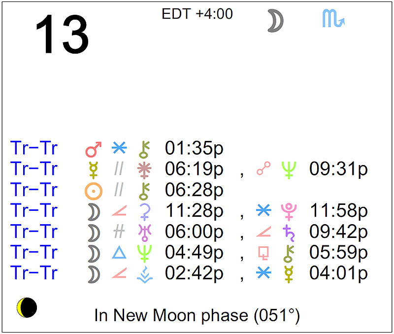**Conjunctions to Select Fixed Stars on September 13, 2018.**