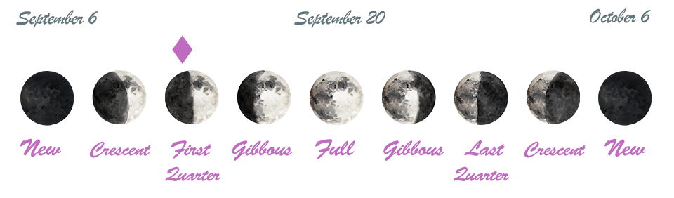 - The Moon is waxing and in its Waxing Crescent phase until 4:39 PM, after which the Moon is in its First Quarter phase.