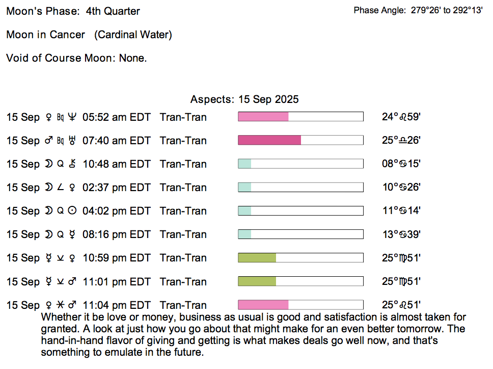 If you’re astrologically inclined and interested in the details of the Astrology of today, here are some of the factors considered in the forecasts: