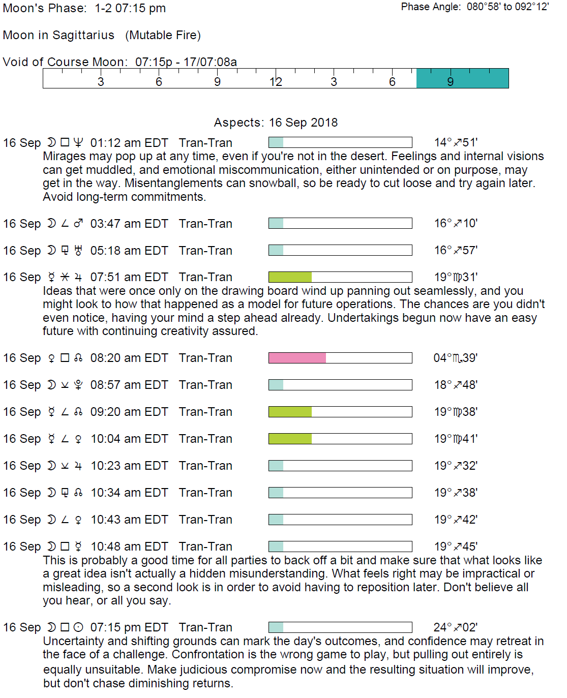 **Conjunctions to Select Fixed Stars on September 16, 2018.**
