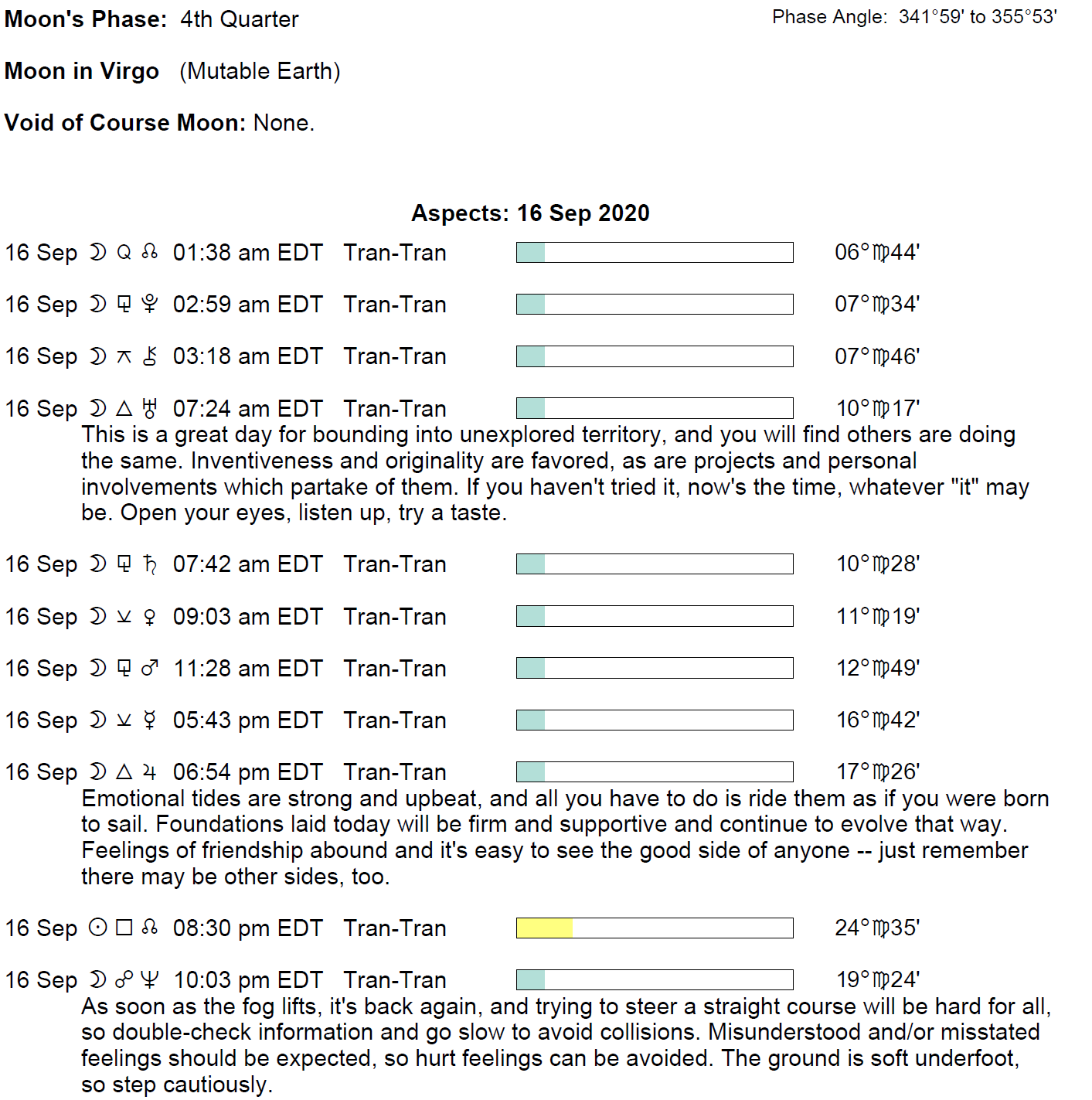 If you’re astrologically inclined and interested in the details of the Astrology of today, here are some of the factors considered in the forecasts:
