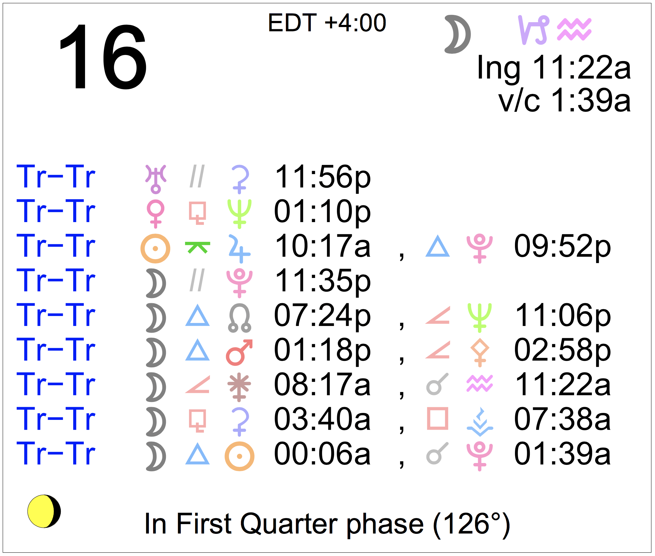 - A void Moon period occurs from 1:39 AM to 11:22 AM.