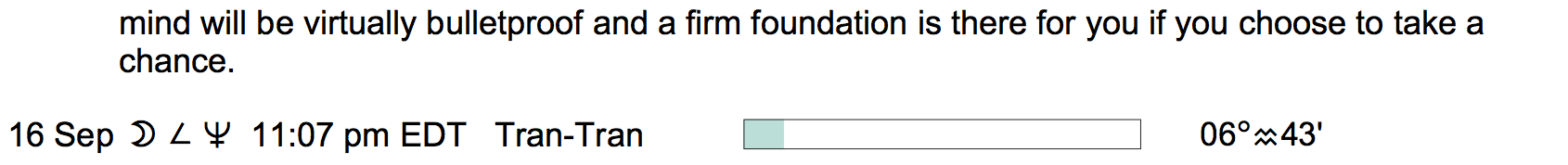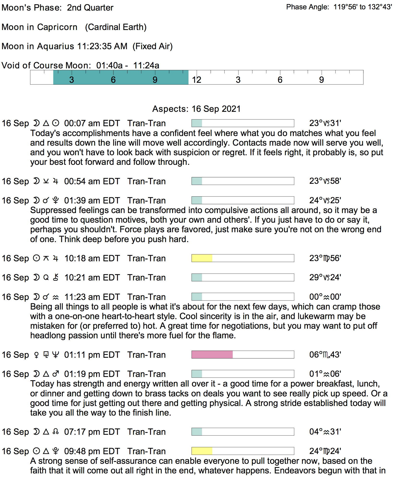 Planet Color Key: The longer the bar, the slower the aspecting planet, and the longer the duration of the planet’s transit.