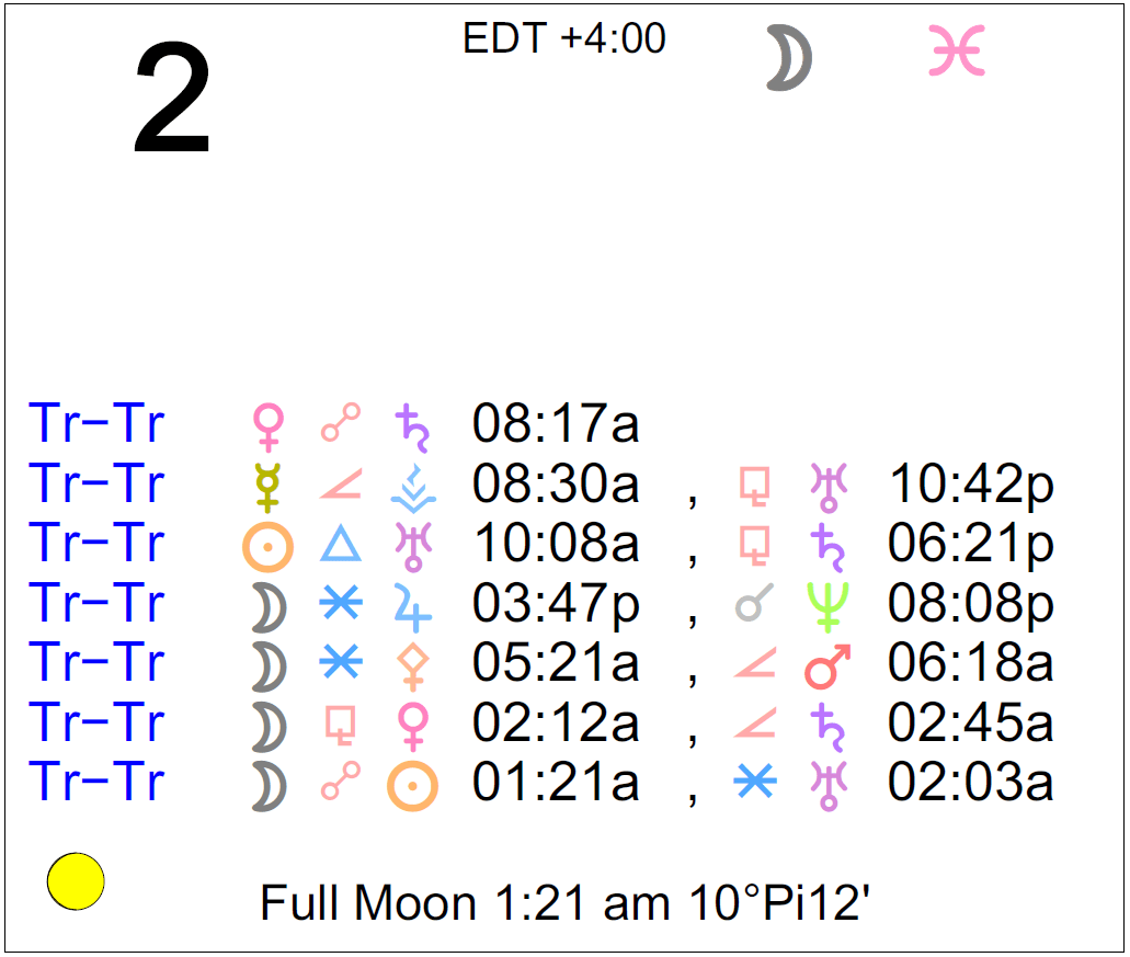 - The Full Moon occurs early today at 1:21 AM in the sign of Pisces.