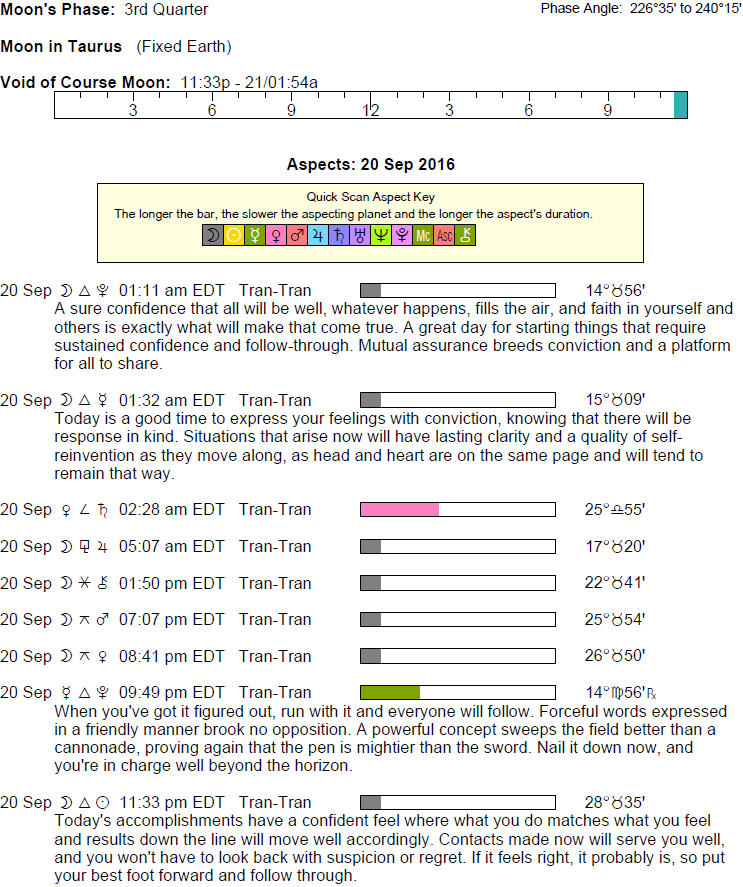 The Moon is in Taurus all day (Wednesday, September 21st, at 1:52 AM).- The Moon is void from 11:32 PM forward (until tomorrow at 1:52 AM).