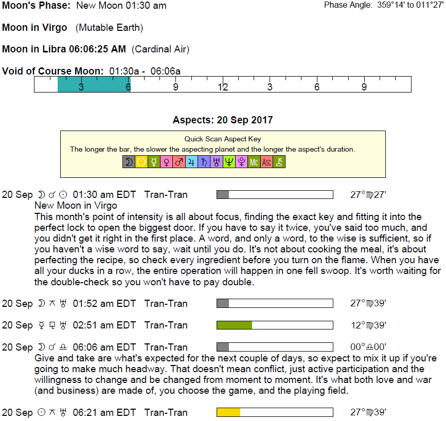 - The New Moon occurs early today, at 1:29 AM, in the sign of Virgo.