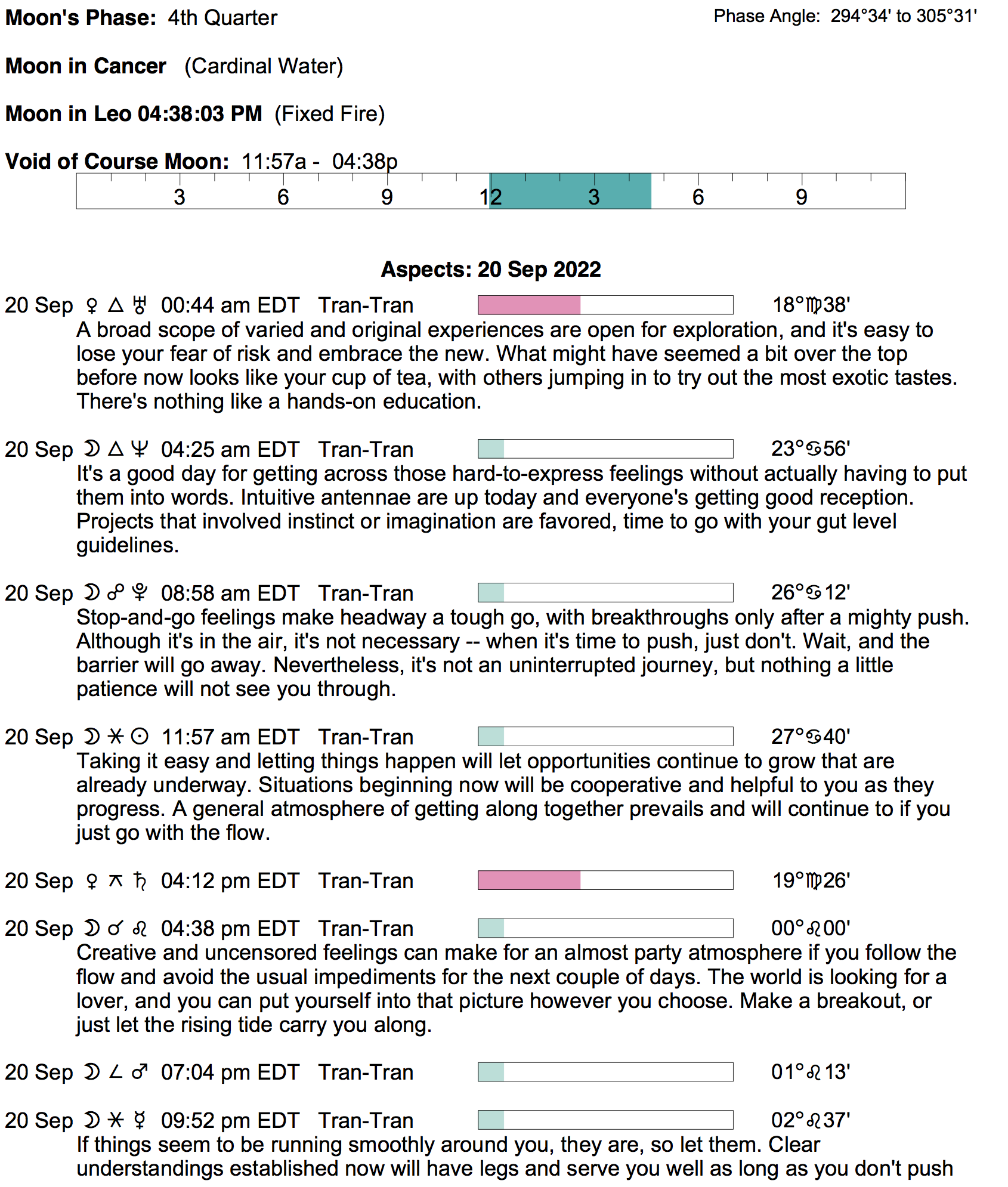 - A void Moon period occurs from 11:56 AM to 4:37 PM today.