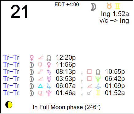 Description: Transiting Moon Opposition Transiting Saturn