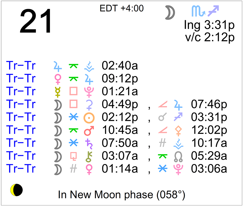 - The Moon is in Scorpio until 3:31 PM, after which the Moon is in Sagittarius.