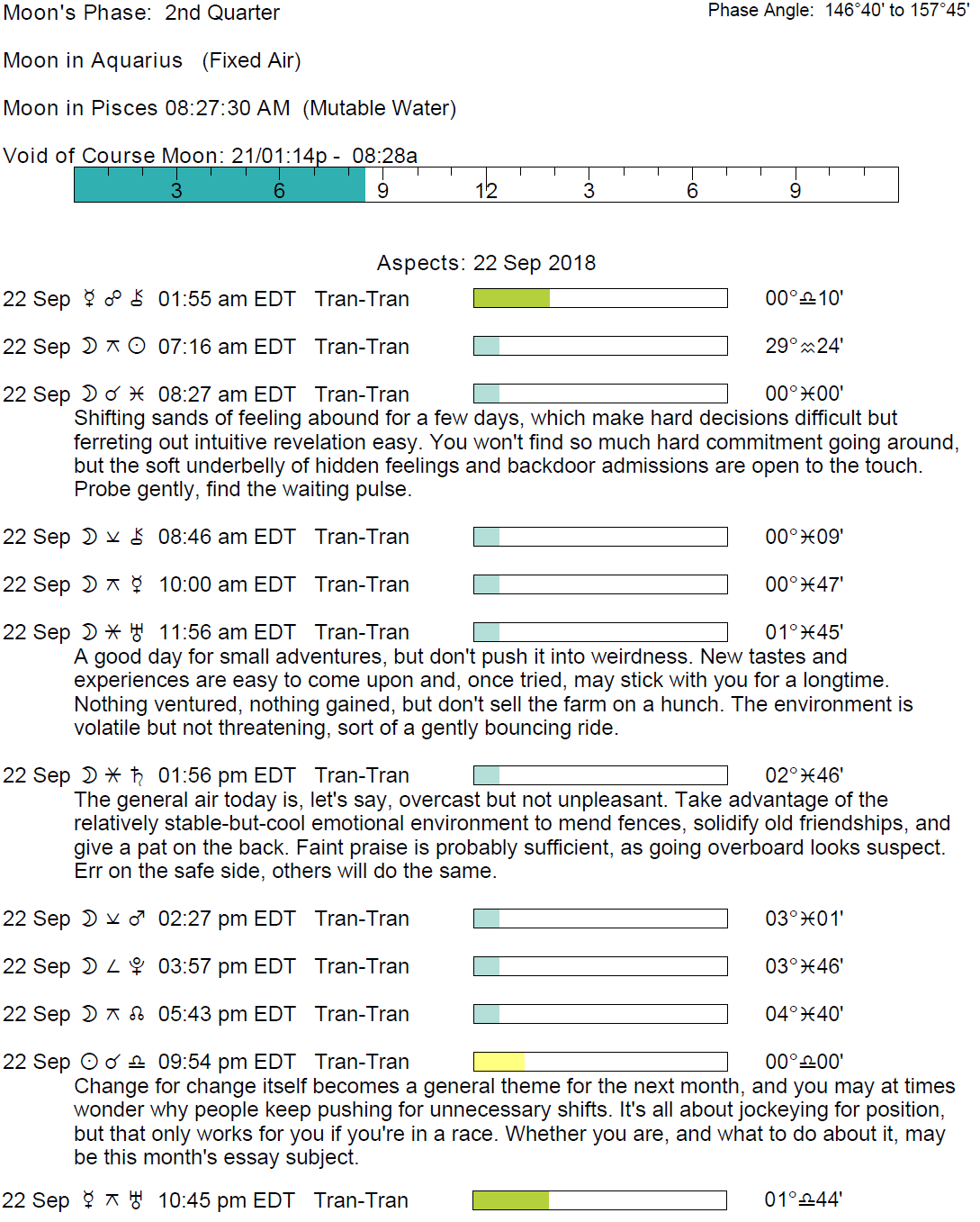 **Conjunctions to Select Fixed Stars on September 22, 2018.**