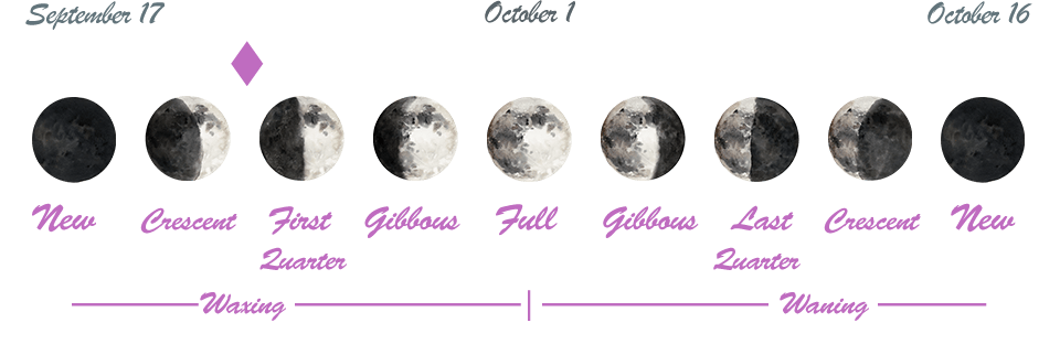 - The New Moon occurred on the 17th in the sign of Virgo, and the First Quarter Moon will occur tomorrow.