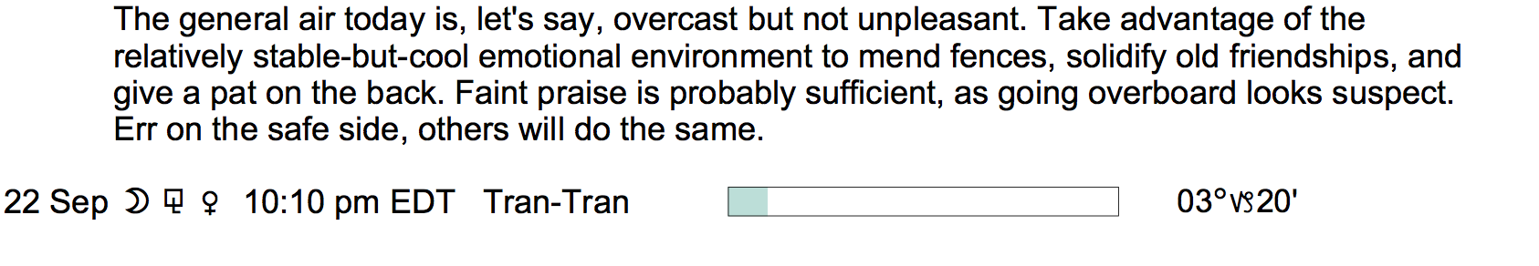If you’re astrologically inclined and interested in the details of the Astrology of today, here are some of the factors considered in the forecasts: