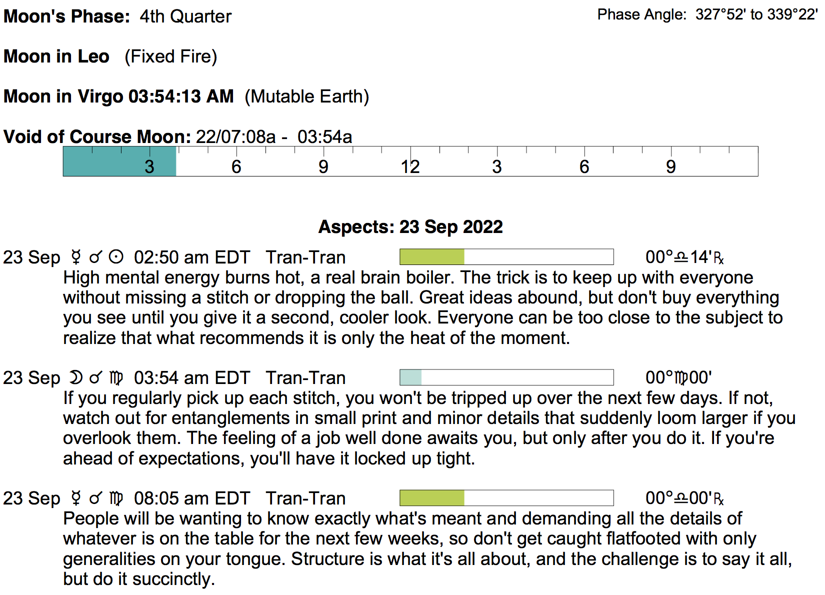 If you’re astrologically inclined and interested in the details of the Astrology of today, here are some of the factors considered in the forecasts: