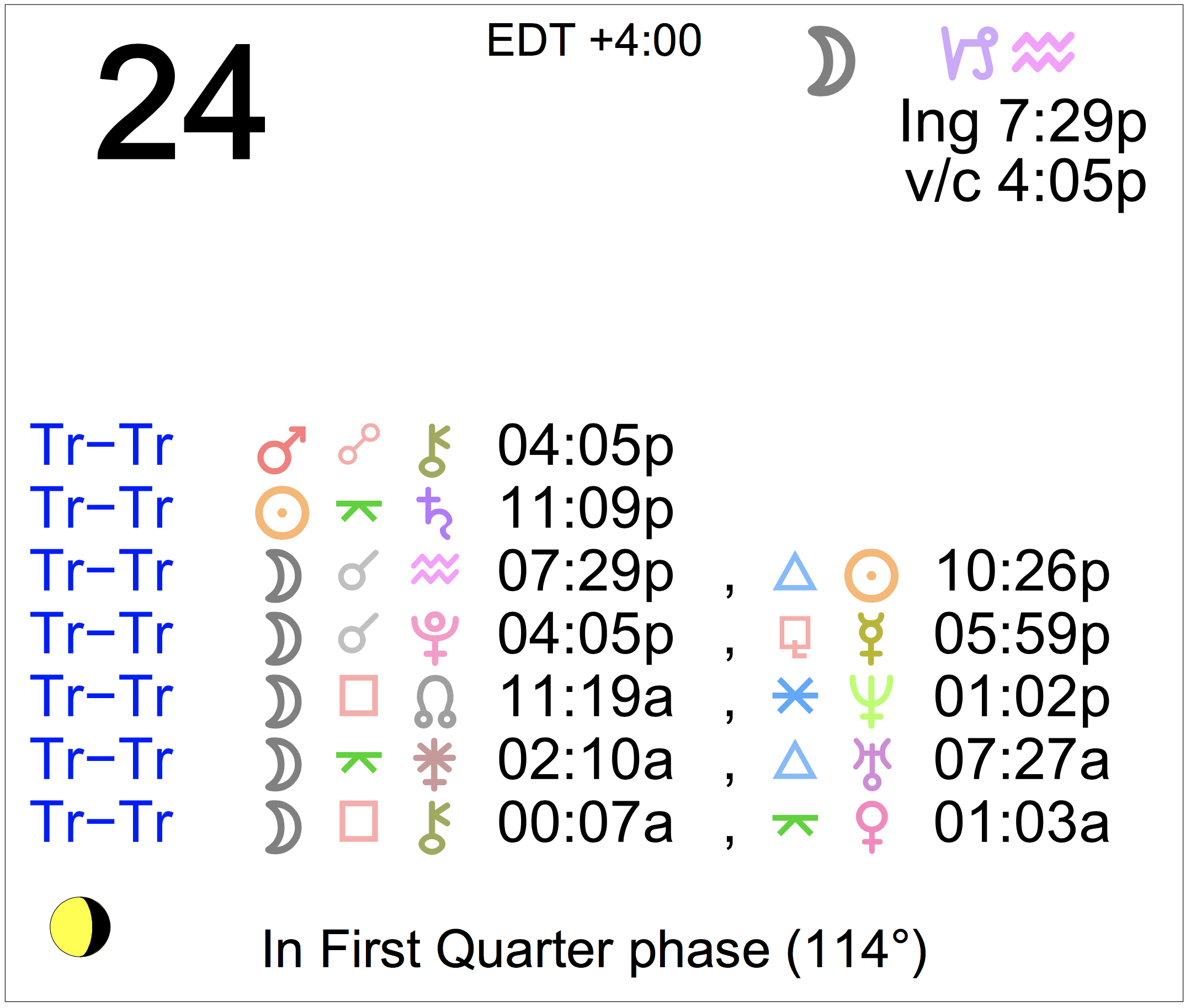 - A void Moon period occurs from 4:05 PM to 7:29 PM today.