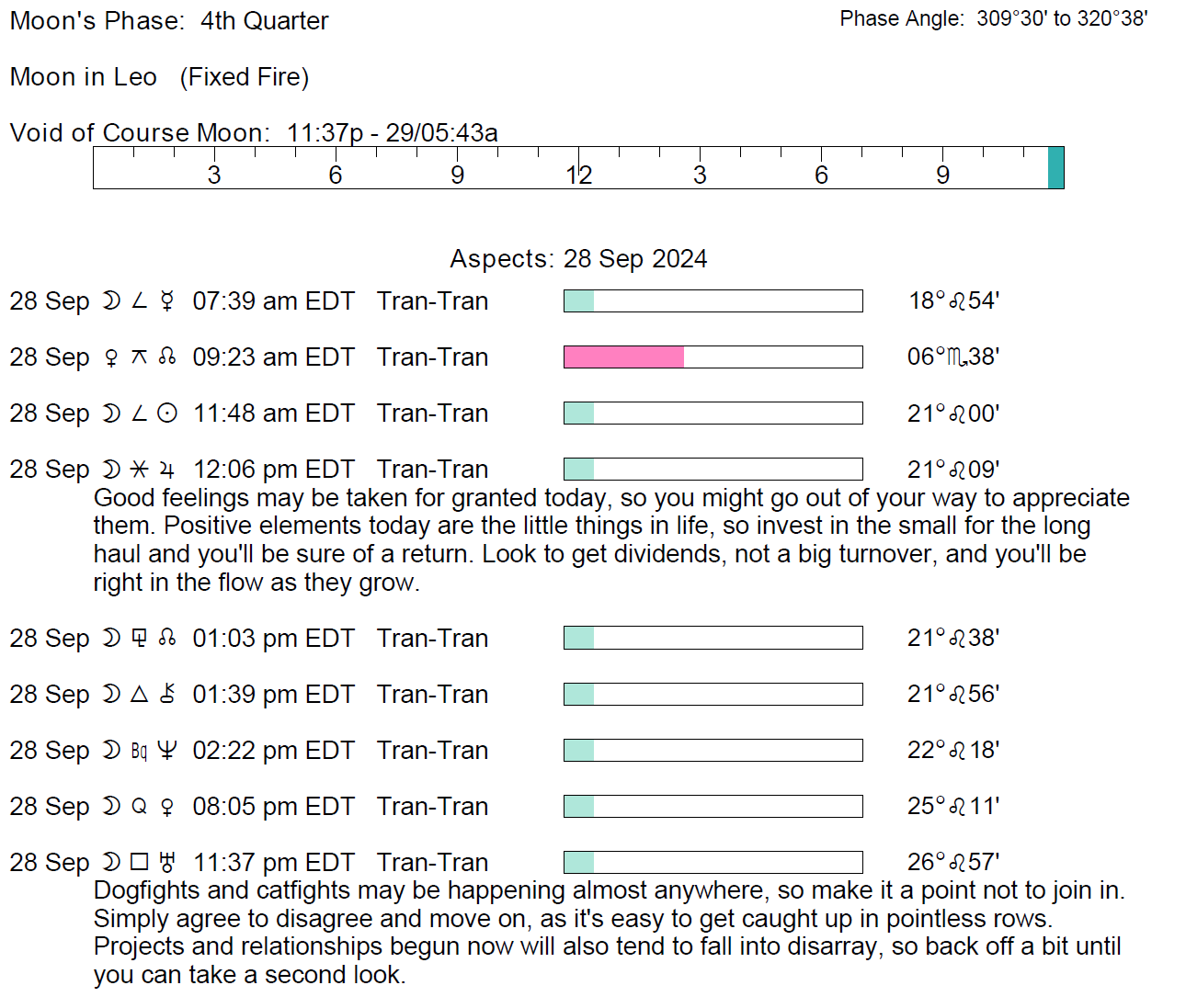 If you’re astrologically inclined and interested in the details of the Astrology of today, here are some of the factors considered in the forecasts: