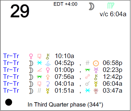 - The Moon is void from 6:04 AM forward (until tomorrow at 3:52 AM).