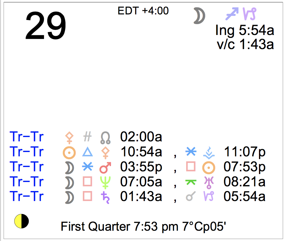 If you’re astrologically inclined and interested in the details of the Astrology of today, here are some of the factors considered in the forecasts: