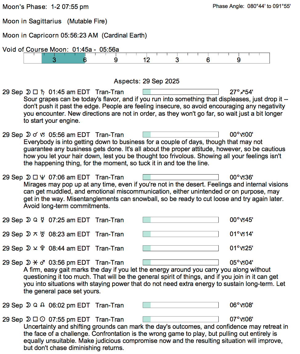 - A void Moon period occurs from 1:43 AM to 5:54 AM today.